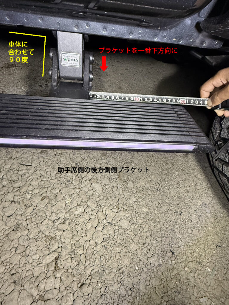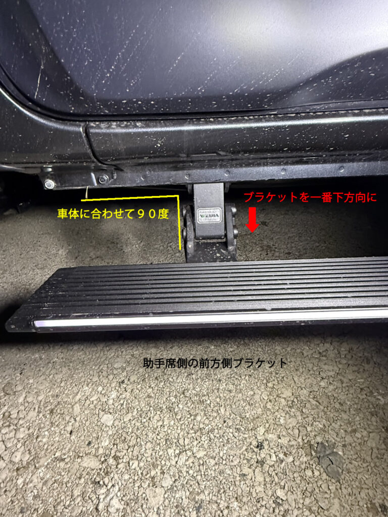 サイドステップが開いている状態で、一番後方のブラケットから決めていきます。